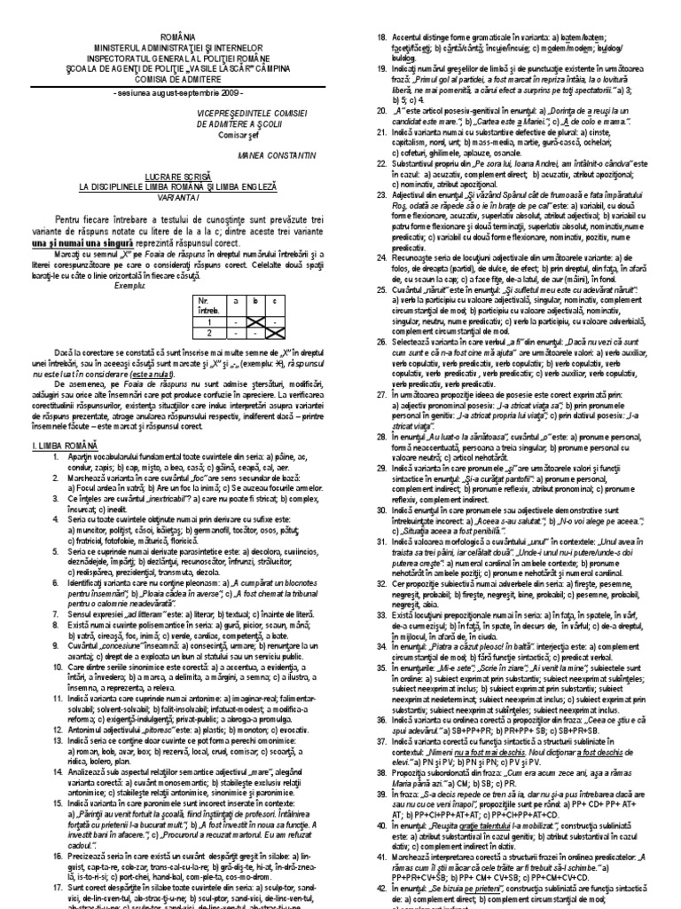 Din cei peste 2000 de candidați care au trecut cu bine de probele sportive și de examinarea medicală, doar 505 au fost acceptați la școala de agenți poliție vasile lascăr din câmpina. Notele la sesiunea din ianuare 2019 sunt mai mici decât la sesiunea din vară 2018. Test subiect romana 2017 campina online 2017 scoala de agenti de politie vasile lascar campina, admitere 2017, teste psihologice, chestionare online. 18:39 radufitness 138 438 просмотров. Fac parte exclusiv din vocabularul.