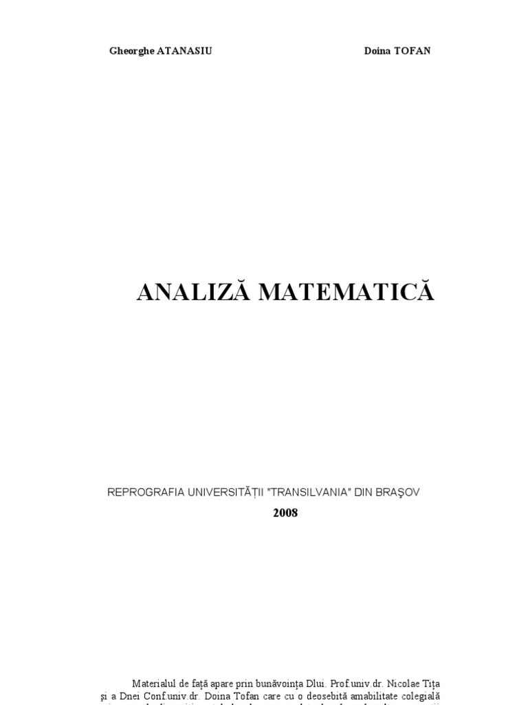 vizitati articolul complet aici : https://www.youtube.com/watch?v=wUHRNk1t4P8 Mai jos poate fi vizualizat cuprinsul si. 2.1 denumirea disciplinei analiză matematică i. Curs analiza matematica anul i.