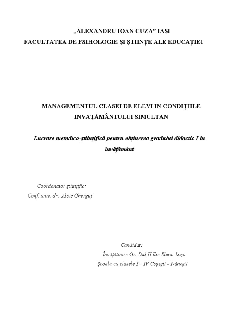 Candidatul pnl mugur cozmanciuc, ușor avans în fața candidatului psd ionel arsene. Gradului didactic i în învăţământ. 170 de pagini, structurata de 5 capitole, note d.