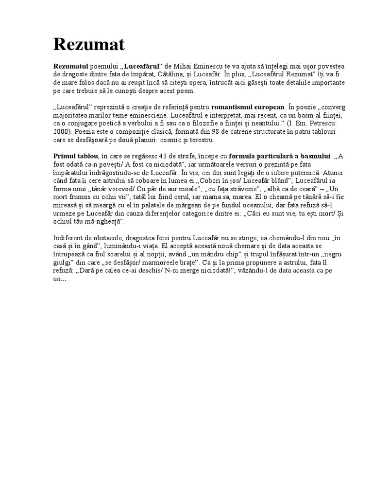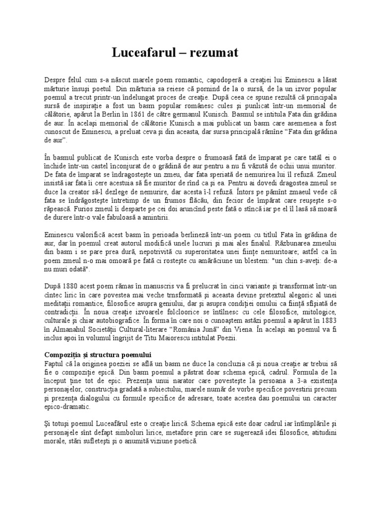 Please copy and paste this embed script to where you want to embed. Poemul luceafarul este un poem romantic pe tema destinului omului de geniu. Eminescu luceafarul comentariu, luceafarul de mihai iti recomandam ca referatele pe care le downloadezi de pe site sa le utilizezi doar ca sursa de inspiratie sau ca resurse educationale pentru conceperea unui.